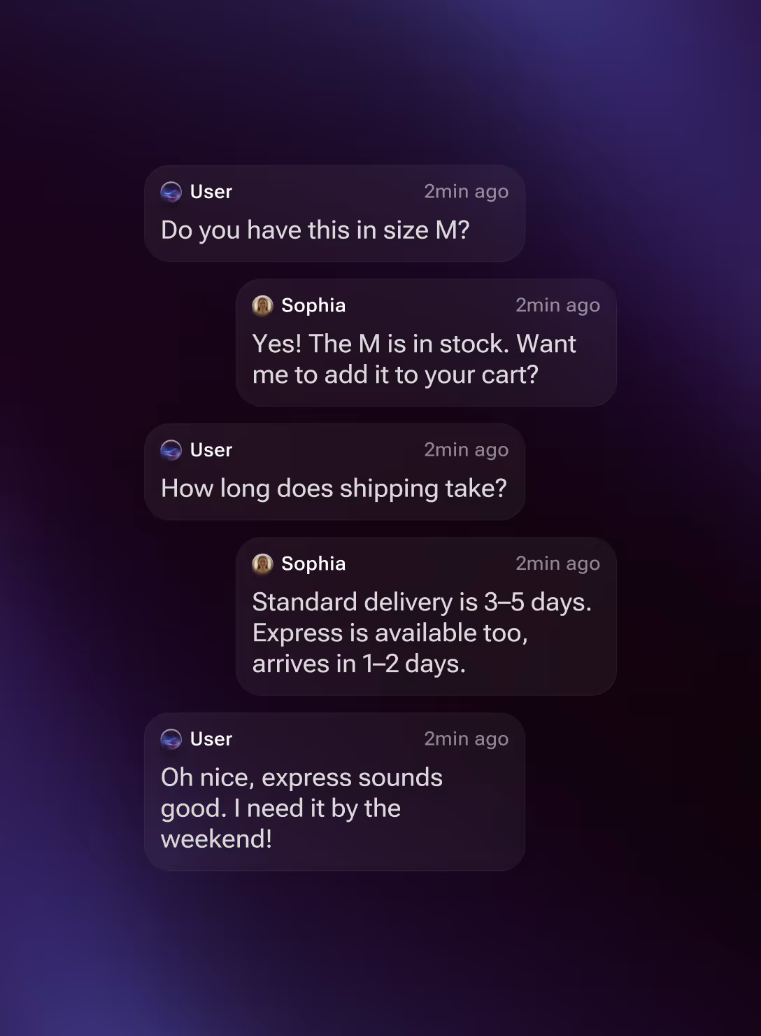 See your AI companions, talk to them naturally. Like video calls you already know—but with AI that understands you.