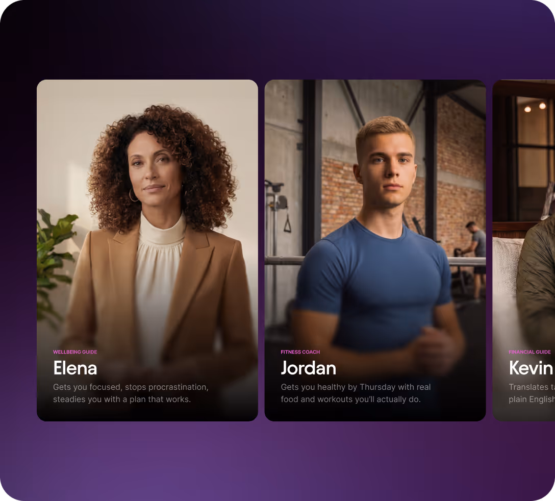 Pre-built characters ready to go. Or create a digital twin from a single photo.