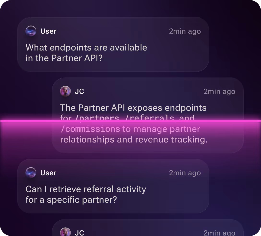 Clean REST APIs and drop-in SDKs for every major framework. Go from zero to a working agent in minutes, not weeks.